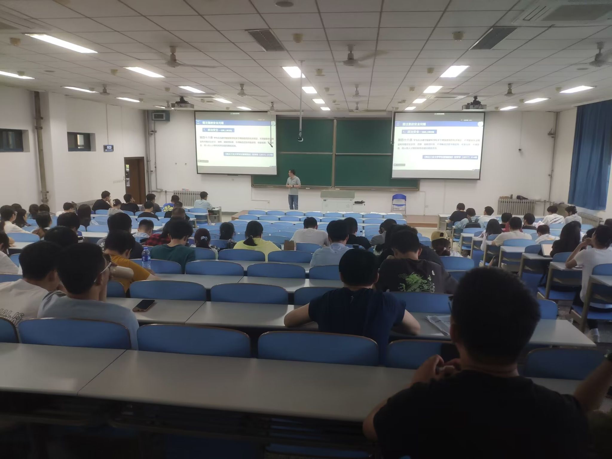 2021级研究生在教学西楼D301召开安全稳定主题教育大班会,强调当前工作生活中应注意的安全问题。会议由辅导员范西昆主持,2021级全体研究生参加。