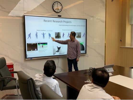 随后,程立教授做了题为《Visual Human Shape and Motion Analysis》的专题报告,介绍了课题组围绕3D人体运动合成、图像和视频的姿态和形状估计、视频动作质量评估等任务开展的研究工作。详细阐述了文本生成动作、文本加图像生成动作、音乐生成动作以及给动作质量打分等前沿工作。最后对于未来发展进行展望并鼓励同学们跟上时代步伐、坚持不懈、勇于创新。