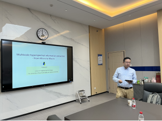 随后,贾秀萍教授作了题为《Multiscale Hyperspectral Information Extraction - From Micro to Macro》的专题报告。报告从图像在信息传播中的重要作用出发,通过介绍遥感成像设备的发展,指出遥感高光谱图像的特点和广泛应用场景,介绍了像素级特征提取与分析方法的发展历程,以及团队的相关研究成果。接着,贾秀萍教授讨论了由于高光谱图像有限空间分辨率导致的混合像元问题,并由此引出亚像素级特征提取与分析的相关研究方法及成果,包括空间超分辨、亚像元制图等。同时,宏观级信息对于大场景图像的理解至关重要,介绍了团队在场景分类、目标识别等方面的研究成果。