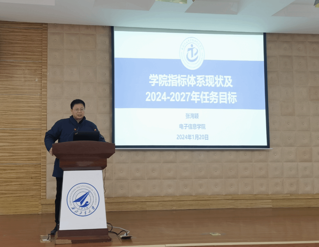 随后,张洵颖汇报了学院新一届领导班子聘期内目标任务,系统分析了学院在学科建设、人才培养、科学研究、师资队伍的发展现状与差距,并提出了2024至2027年学院发展思路。他表示,全院师生要上下一心,精准施策、凝心聚力,锚定学校“127”发展目标,明确学院“双一流”建设思路,守正创新、埋头苦干,推动学院目标责任制顺利完成。