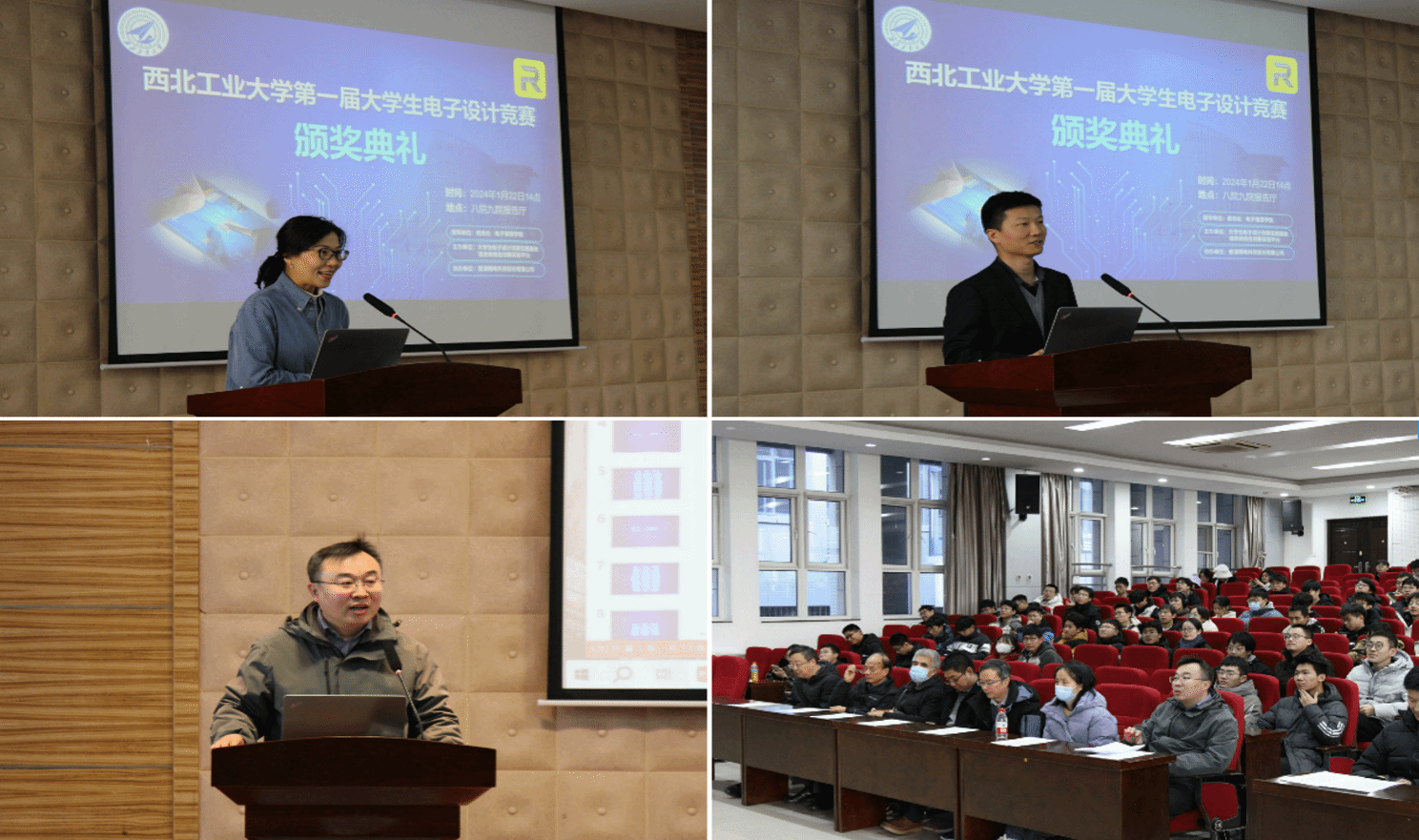 第一届大学生电子设计竞赛颁奖典礼在八院九院报告厅举行。本次竞赛共产生一等奖5项,各奖励普源精电DHO814高性能示波器1台;二等奖10项,各奖励现金500元。三等奖35项,各奖励现金200元。教务部王劲副部长在总结中,充分肯定了本次竞赛的组织及保障工作,并对参赛同学的辛苦付出给予高度赞扬,勉励同学们继续努力,在接下来的省赛和国赛中再创佳绩。