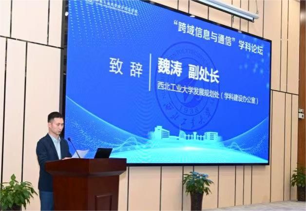 魏涛代表学校致辞。他首先对各位专家学者的到来表示热烈欢迎和感谢,并希望能通过本次学科论坛的举办,进一步深化空天海跨域信息与通信前沿技术研究,推动关键瓶颈技术取得实质性突破,为达成西工大“127”近期目标、推动新一代信息技术快速发展贡献西工大力量。
