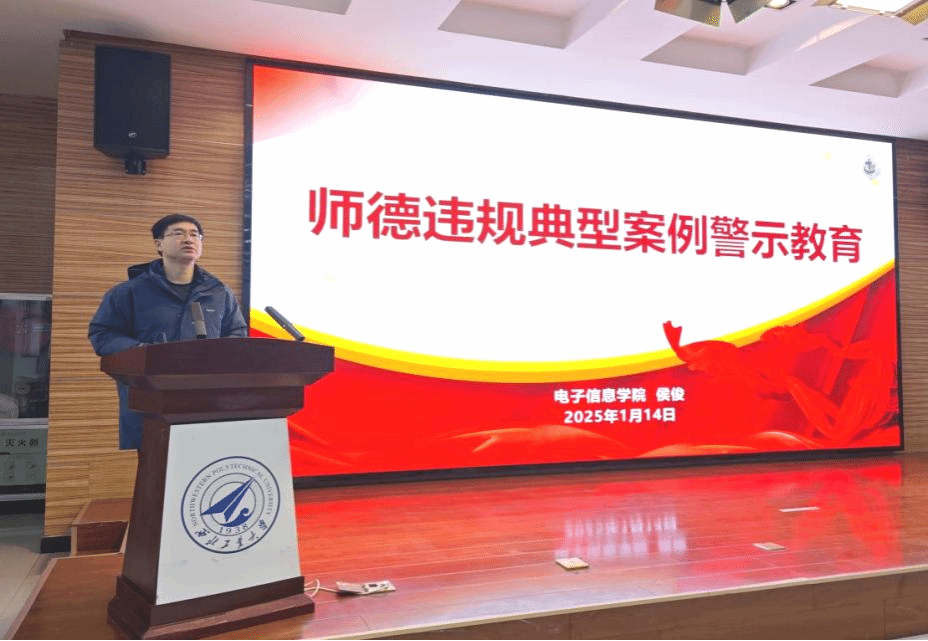侯俊带领全体人员开展了师德师风警示教育培训,要求每位教师以立德树人为根本任务,以案为鉴、警钟长鸣,特别要从身边事做起,严防教学事故等事件发生。随后通报了学校寒假放假安排及假期注意事项,他表示,衷心感谢学院师生一年来辛勤付出以及对学院工作的大力支持。他强调,新的一年全院教职工要锚定学校“127”发展目标,保持良好奋进势头,院领导班子做好顶层规划、细化举措方案,全院师生全力以赴、狠扎落实,以更加饱满的热情、更加昂扬的斗志,不断推动学院发展再上新台阶,为实现“天下工大、世界三航”远景目标贡献力量。