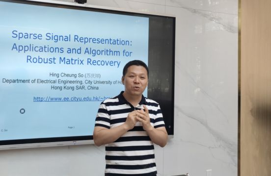 报告伊始,主持人梁军利对苏庆祥莅临讲学表示热烈欢迎,并简要介绍了苏教授在信号处理、稀疏表示及优化算法等领域的深厚造诣和重要学术贡献。