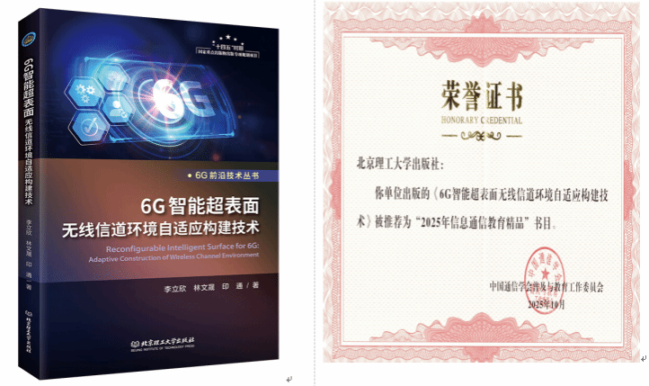 李立欣教授团队出版的著作《6G智能超表面无线信道环境自适应构建技术》成功入选中国通信学会“2025年信息通信科普教育精品”书目。全国共18部科普类图书和20部教材类图书入选。