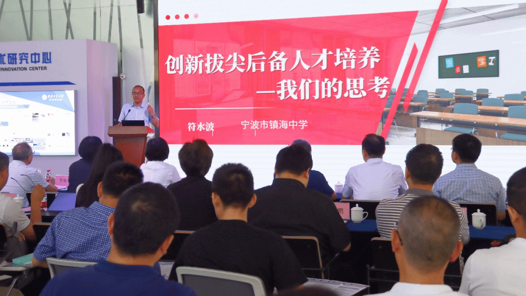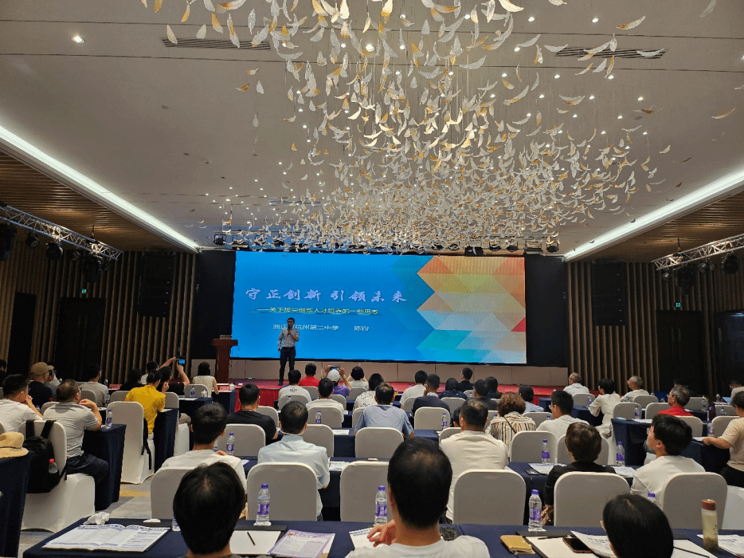 在中学代表报告环节,杭州第二中学副校长、全国青少年科技创新人才培养项目优秀科技教师、化学竞赛金牌教练陈钧做了“守正创新,引领未来——关于拔尖创新人才培养的若干思考”报告,镇海蛟川书院副院长、镇海中学信息学总教练、信息学金牌教练符水波做了“创新型拔尖后备人才培养的思考”报告,从不同的角度分享了他们培养拔尖创新人才的经验。