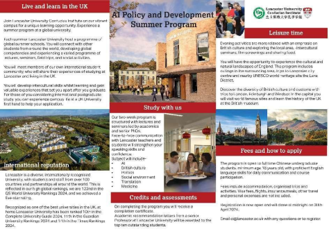 2024年电子信息学院人工智能和信息技术发展英国兰卡斯特大学暑期实践项目