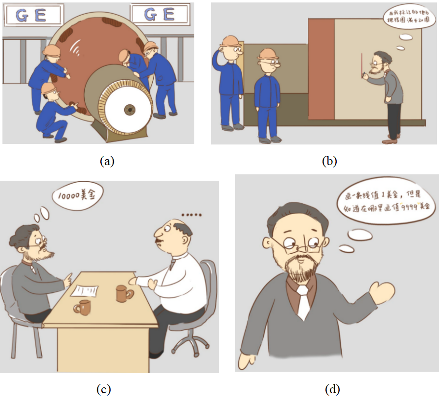 3. 名人故事:通过对提出相量法的科学家(斯泰因-梅茨)和其著名的“一线万金”的故事进行动画介绍,弘扬科学精神、工匠精神、奋斗精神,既活跃了课堂气氛,又潜移默化地告知学生“知识就是力量,知识就是财富,知识改变命运”,激发学生的学习兴趣。