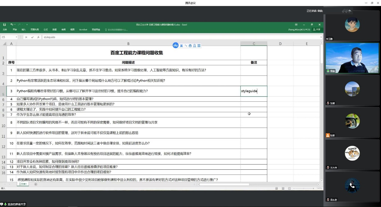 11月5日晚,在《Python程序设计》课堂,百度金牌讲师、百度智能云资深研发工程师章淼博士就专业能力提升、未来行业发展、学生职业发展规划等相关问题进行了在线授课和答疑,70多名学生参与聆听。sm调教