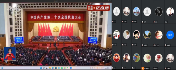 举世瞩目的中国共产党第二十次全国代表大会于10月16日上午10点在人民大会堂隆重开幕,办公室党支部组织全体党员线上收看开幕会盛况,认真聆听习近平总书记代表第十九届中央委员会向大会作的报告。