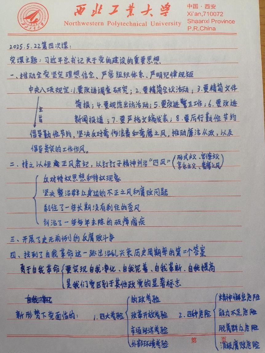 各位学员围绕学校第十四次党代会精神、总师育人文化、中央八项规定精神相关内容进行专题研讨,从课程学习、专业实践、日常行为等维度出发,聚焦提升“总师型”人才雏形特质能力、在学习生活中践行廉洁准则等,认识到要始终以严于律己的态度,将个人成长与国家发展同频共振,用青春热血为强国建设添砖加瓦。研讨期间,同学们结合教学内容、专业方向和成长经历,分享感悟、明确目标、规划举措,在热烈讨论中感悟党的精神内核,树立勇担时代重任的远大志向。